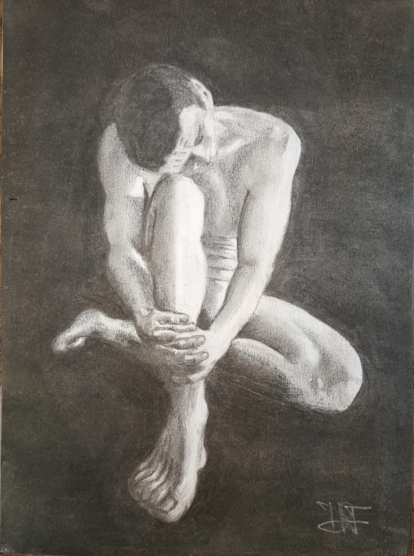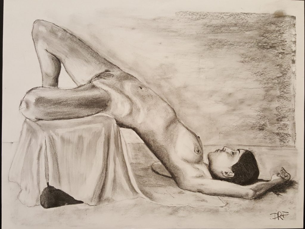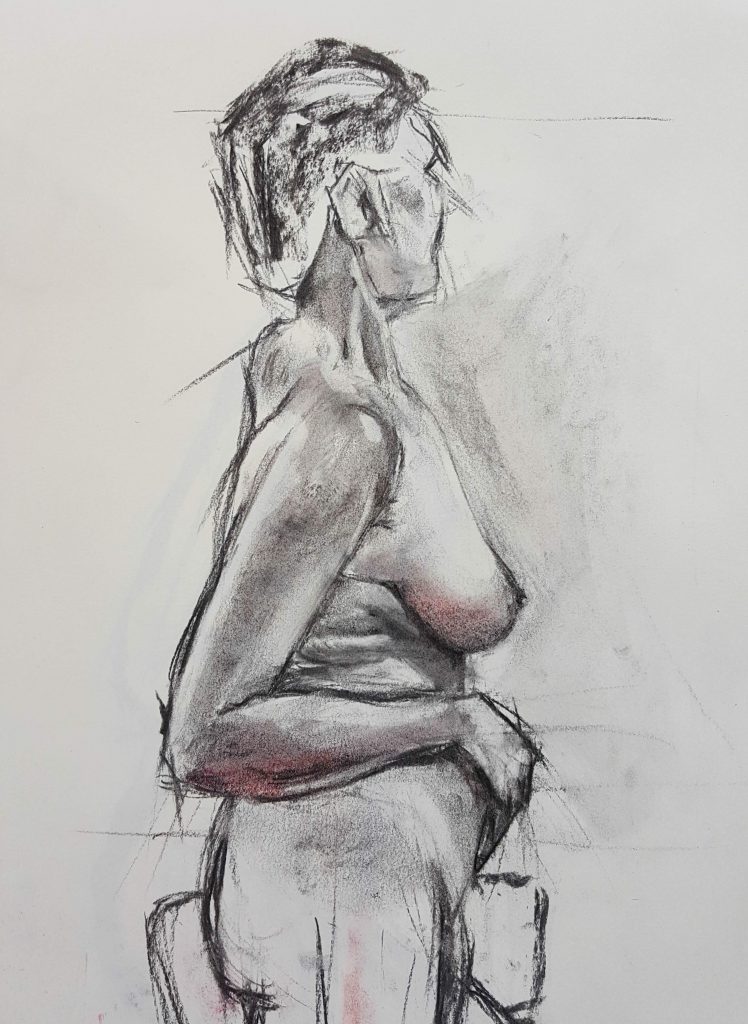I first tried this using a mirror, cos I had read that only proper self portraits where done live from a mirror.. so I tried, see below. To me it is a more dynamic sketch and I like the composition.. just a shame the likeness didn’t work out. So I asked a friend, Louna, to take my photo so I could have another go from that.