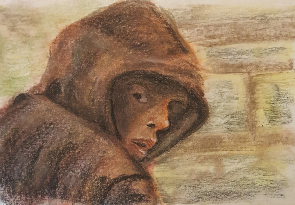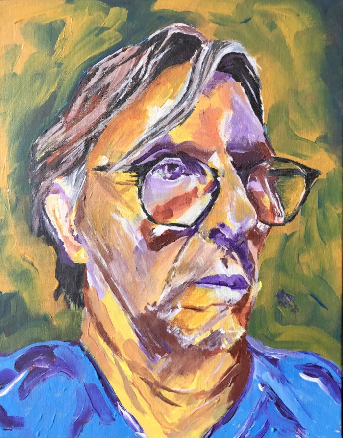 Self portrait, acrylic on canvas board, 28cm x 36cm