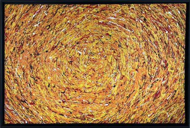 Who by Fire? Household paints on stretch canvas, 61cm x 92cm (65cm x 96.5cm)
