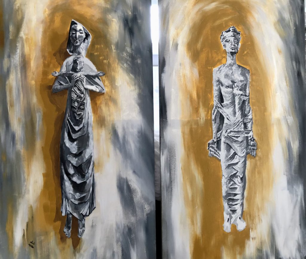 These are two individual paintings, acrylic on stretch canvas, each 49.5cm x 100cm, always displayed together.